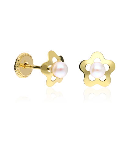 Pendientes de Oro de 18K en forma de flor con perlas cultivadas. Cierre de tuerca.