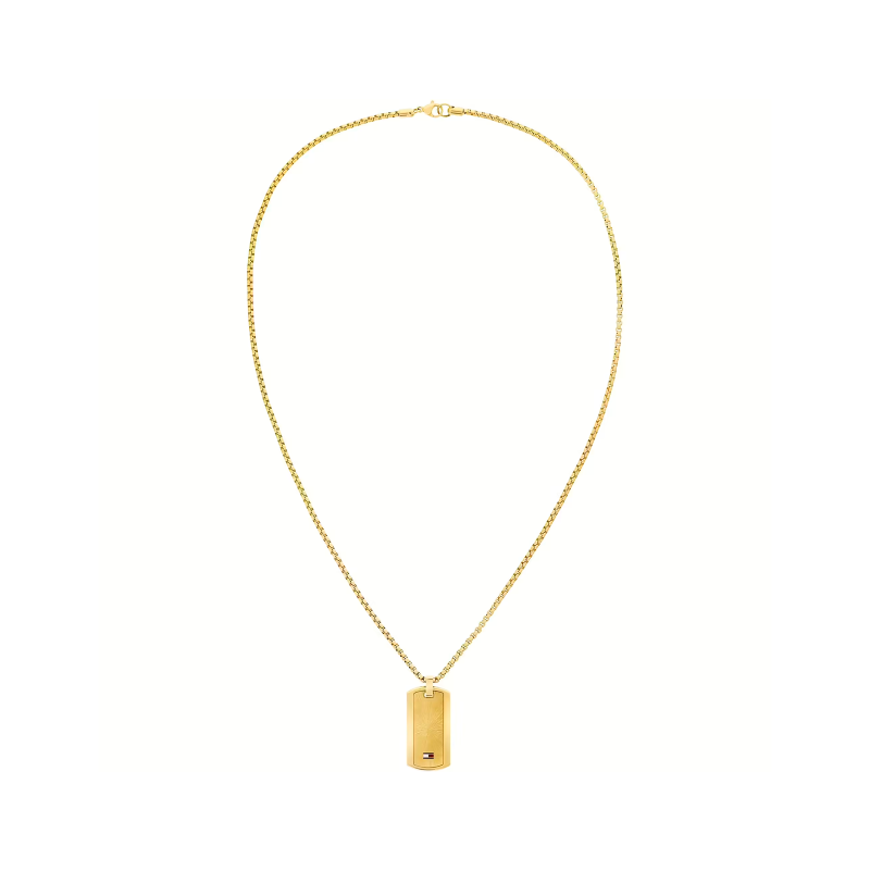 Collar Tommy Hilfiger Hombre Jameson Acero Inoxidable Dorado 2790628: Collar de la marca Tommy Hilfiger para hombre fabricado en acero inoxidable dorado con logotipo de la bandera de la marca grabada en la placa. Un diseño elegante y minimalista para combinar con cualquier look casual.