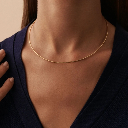 Collar Agatha Rígido 2680215-157-TU: Cadena semirígida de serpiente de 40 cms de largo. Una base original y especial para lucir tus colgantes de la suerte. Crea tu collar personalizado con los amuletos de moda de la nueva colección de Maria Pombo X AGATHA. Joya acabada en oro.