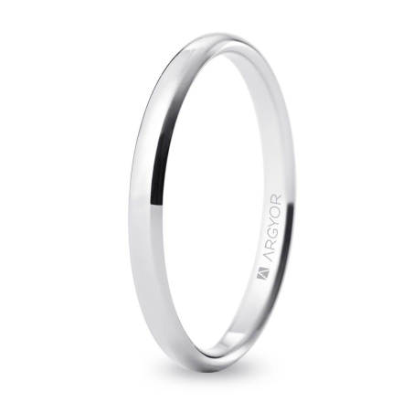 Alianza de boda oro blanco 9k media caña pulida fina 2 mm