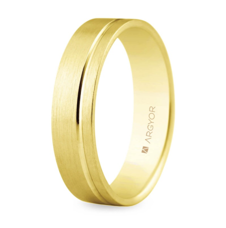 Alianza "Argyor" Mixta/Plana Oro 18k 5mm (5150316): Alianza confort de 18k y 5mm con diseño plano satinado y ranurado rectilíneo en brillo. Tiene el interior confort para aportar una mayor comodidad. Un anillo de bodas elegante para el uso diario, de estilo fresco y juvenil.
