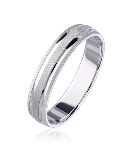 ALIANZA "NEXO" ORO BLANCO 18K: Fabricada en oro blanco de primera ley, tallada en diagonal y dos canales pulidos. Interior plano.