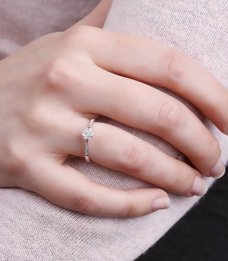 Anillo "Campobasso" Oro Blanco 18k y Diamantes 0.20 cts: Clásico anillo de roseta central de diamantes, y con hombros tambien engastados con diamantes Blancos Wesselton H y Pureza VS1, con un peso total de todos ellos de 0.20 quilates.
