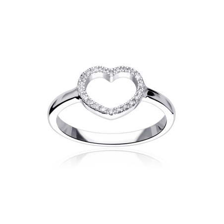 Anillo "Alessandría" Oro Blanco 18k y Diamantes 0.08 cts: Montura en oro blanco de primera ley con corazón calado y 22 diamantes color Blanco Wesselton H y Pureza VS1 engastados en todo su perímetro.