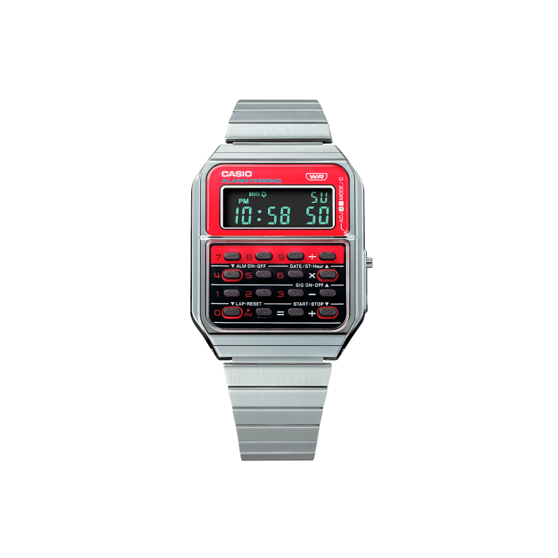 Reloj Casio Vintage Rojo y Negro CA-500WE-4BEF: Reloj Casio Vintage inspirado en el primer reloj multifunción en color negro y rojo. Dispone de cuatro funciones: reloj, alarma, cronógrafo y cálculo de tiempo (calculadora). Este memorable producto sirvió como plataforma de lanzamiento para el desarrollo de las siguientes innovaciones con funciones combinadas de Casio.