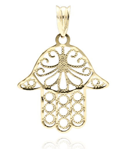 Colgante de oro de 18 quilates Mano de Fátima con un elegante tallado.