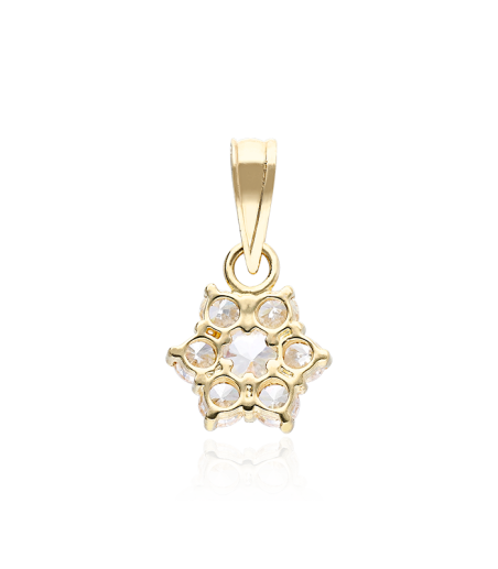 COLGANTE "ROSETTE I" ORO 18K Y CIRCONITAS: Fabricado en oro amarillo de primera ley, con 7 circonitas cúbicas engastadas en garra y acabado pulido. Clásico colgante de roseta que no puede faltar en tu joyero. Cadena no incluida.