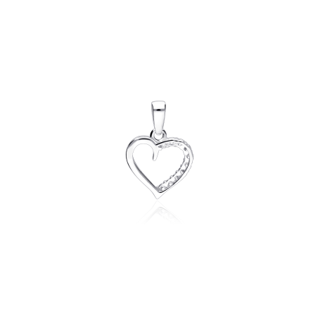 Colgante Oro 18k y circonitas "Destino": Increíble colgante en forma de corazón fabricado en un brillante Oro blanco de 18 quilates en acabado pulido. Uno de sus laterales esta engastado con circonitas de talla brillante transparentes aportando dinamismo al diseño y originalidad. Una joya para demostrar el gran amor que sientes hacia esa persona que siempre esta en tus pensamientos.