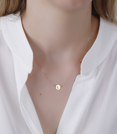 Preciosa gargantilla de la colección "Abc" en Oro 18K amarillo, Inicial L. Acabado pulido.