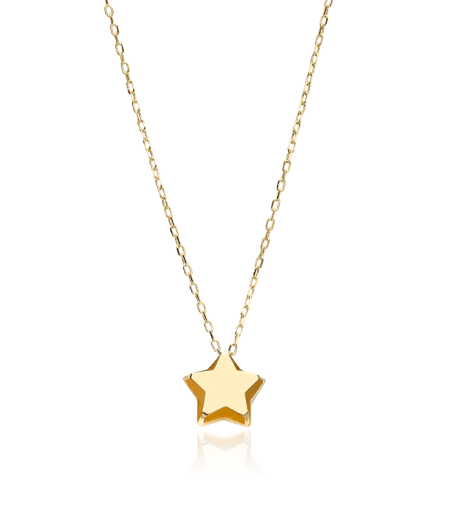 GARGANTILLA "LALLA" ORO 18K: De acabado pulido y circonita engastada, con colgante en forma de estrella de cinco puntas y fabricada en oro de primera ley. El cierre es de reasa marinera. Longitud ajustable entre 41 y 45 cm gracias al asita intercalada entre los eslabones.