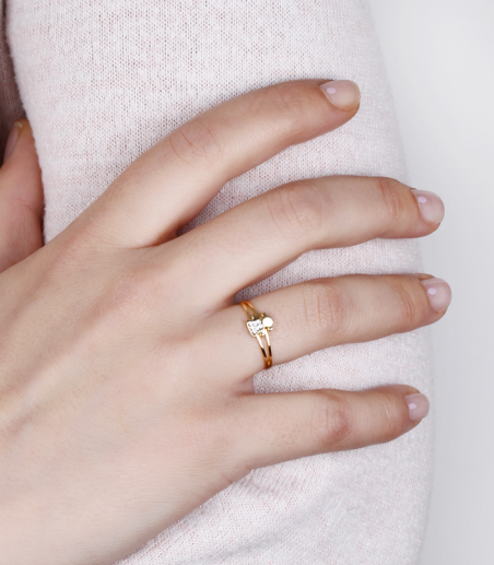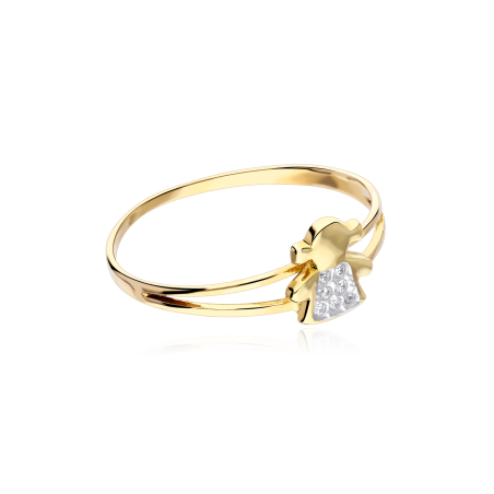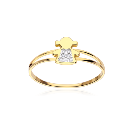 CONJUNTO "AMANDA" ORO 18K PERLAS CULTIVADAS: Fabricado en oro amarillo de primera ley, con la divertida silueta de una niña y 7 circonitas engastadas en su interior. Los pendientes montan perlas cultivadas esféricas y cierres a presión. Anillo con aro de doble cuerpo.