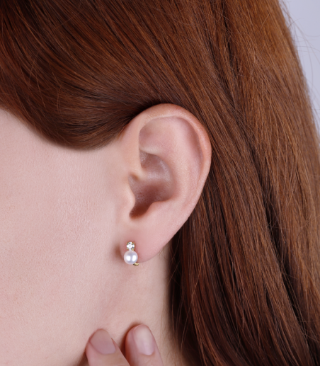 CONJUNTO "BAGNARIA" ORO 18K PERLAS CULTIVADAS: Fabricado en oro amarillo de primera ley, anillo con aro de media caña y pendientes con cierre catalán. Ambos con perla cultivada y circonitas engastadas en garra.