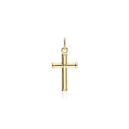 Colgante Oro 18k Cruz 15mm "Facile": Cruz en forma de tubo lisa, fabricada en oro de primera ley, con sección redonda, terminada en sus 4 puntas con 4 casquillas de mayor diámetro.