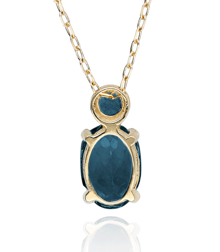 Gargantilla "London Blue" oro 18k y Topacios. La pieza inferior mide 5x7mm y 3 mm el detalle superior, formando un total de 10mm de alto. La cadena cuenta con 39,5 cm más 5 cm de extensión.