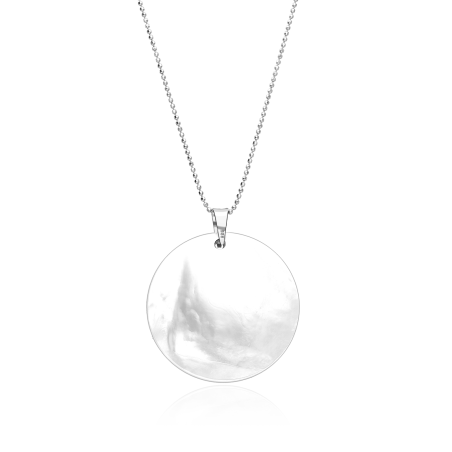 Gargantilla Plata ley y nácar "Mamá": Collar realizado en plata de primera ley de acabado pulido con la palabra Mamá con una flor calada sobre placa de nácar natural. Cadena de bolitas con longitud regulable y cierre de tipo reasa.