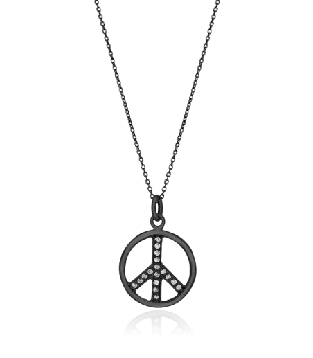 GARGANTILLA "GUNNAR BLACK" PLATA DE LEY: Gargantilla fabricada en plata de primera ley con baño de rodio negro. Con colgante símbolo de la paz adornado con circonitas con circonitas transparentes en un acabado semimate. Cadena de eslabones y cierre de tipo reasa.