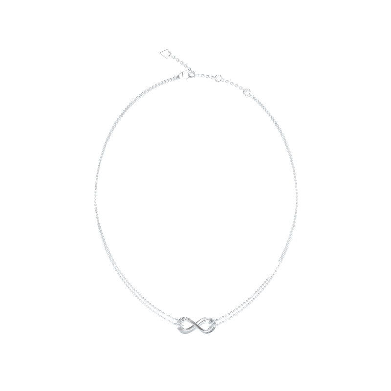 Collar Guess Mujer Acero Infinito JUBN05049JWRHT-U: Gargantilla fabricada en acero pulido con logotipo Guess grabado en el símbolo de infinito. Cierre de tipo mosquetón con anillas para regular su largo.