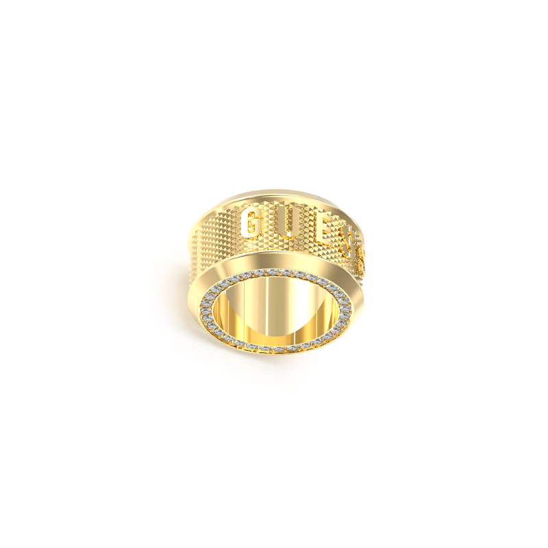 Anillo Guess Hombre Lion King Acero Dorado JUMR05016JWYG: Anillo Guess para hombre en acero dorado de la colección Lion King con circonitas y el nombre de la marca grabado. Un diseño con personalidad para combinar con cualquier look.