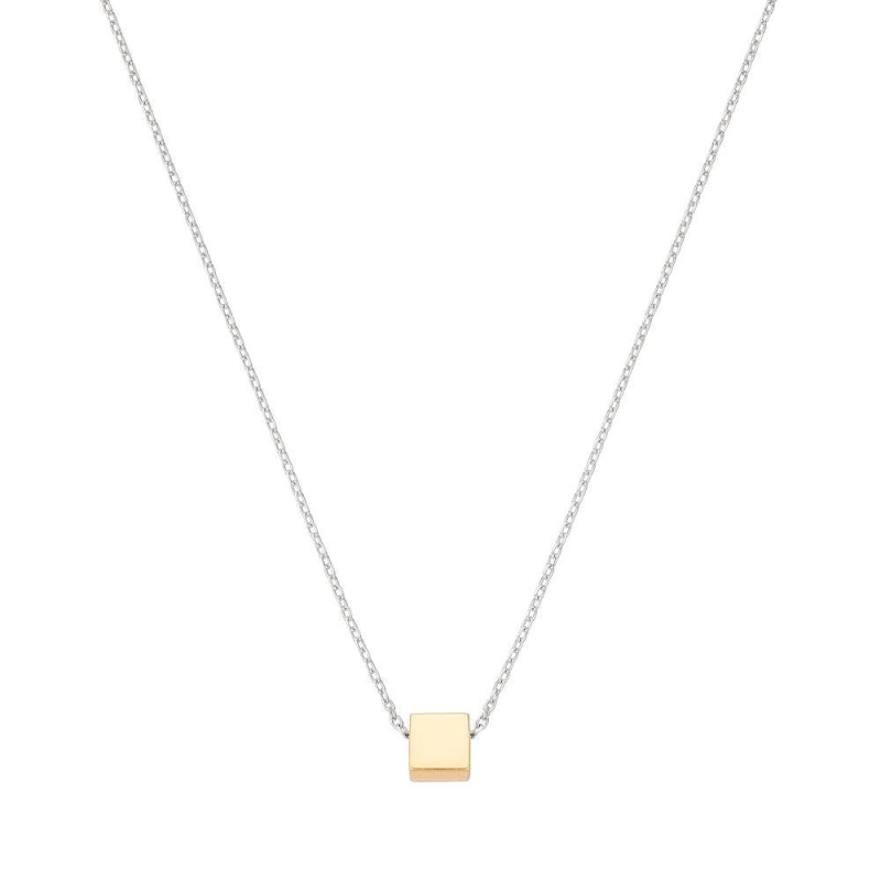 Collar de Plata de Primera Ley bicolor con forma de cubo 3D. Con sus facetas cuadradas, el estilo, la sofisticación y el glamour, formarán parte de tu día a día. El diseño minimalista de esta colección Cube mezcla la elegancia urbana y la modernidad. Para que luzcas moderna.