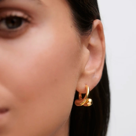Pendientes PdPaola Loop AR01-C85-U: Aros modernos con diseño asimétrico y dos motivos entrelazados en forma de gota, fabricados en plata de primera ley de acabado pulido con baño en oro amarillo de 18k. Cierre de tipo aro o clip.