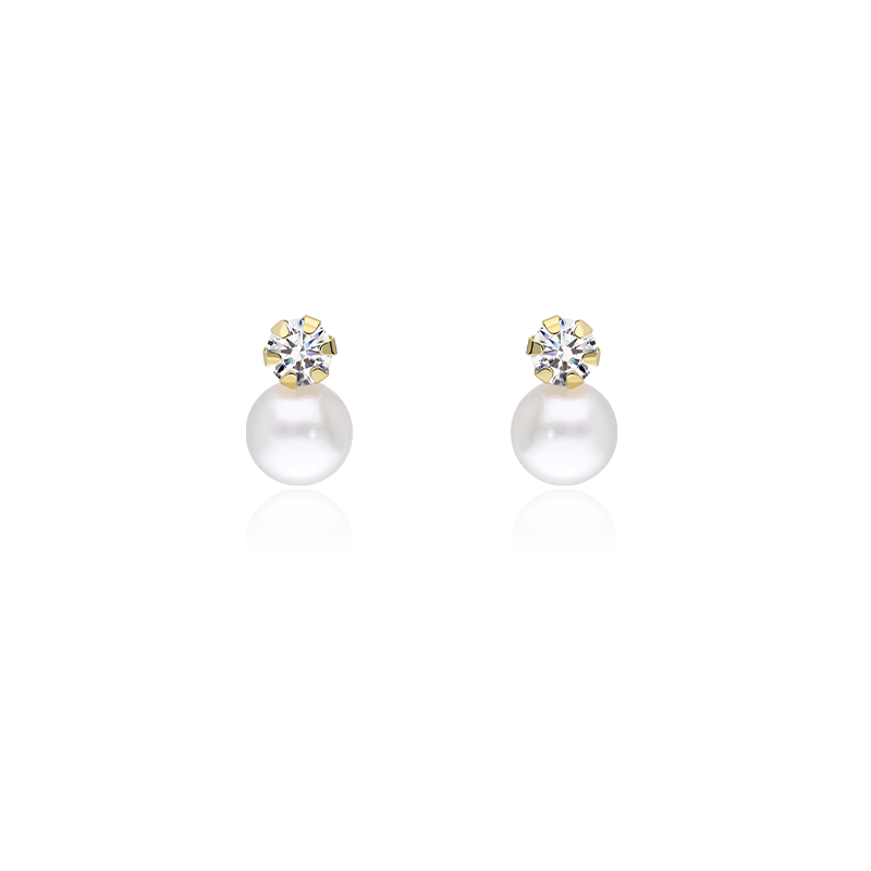 PENDIENTES "LENNA" ORO 18K PERLAS CULTIVADAS 6MM: Fabricado en oro amarillo 18k, con circonitas engastadas en garra y perlas cultivadas esféricas, pasadas en su interior con perno de oro para mayor seguridad. Ideales para bebé, primera puesta. Cierre de tipo rosca.