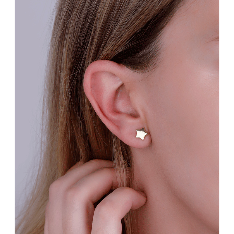 PENDIENTES "ETOILE" ORO 18K: Estrellas de 5 puntas, fabricadas en oro amarillo de primera ley, con un bonito acabado pulido y cierres de mariposa a presión.