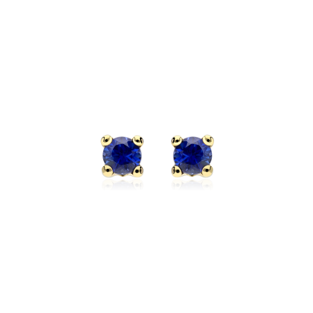 Pendientes "Four" oro amarillo de 18k con Zafiros: Montados en garra de cuatro patillas y fabricados en oro de primera ley. Unas garras de cuatro patillas abrazan estos dos preciosos zafiros auténticos. El cierre es de mariposa a presión. Medidas: 4,3mm x 4,3mm.