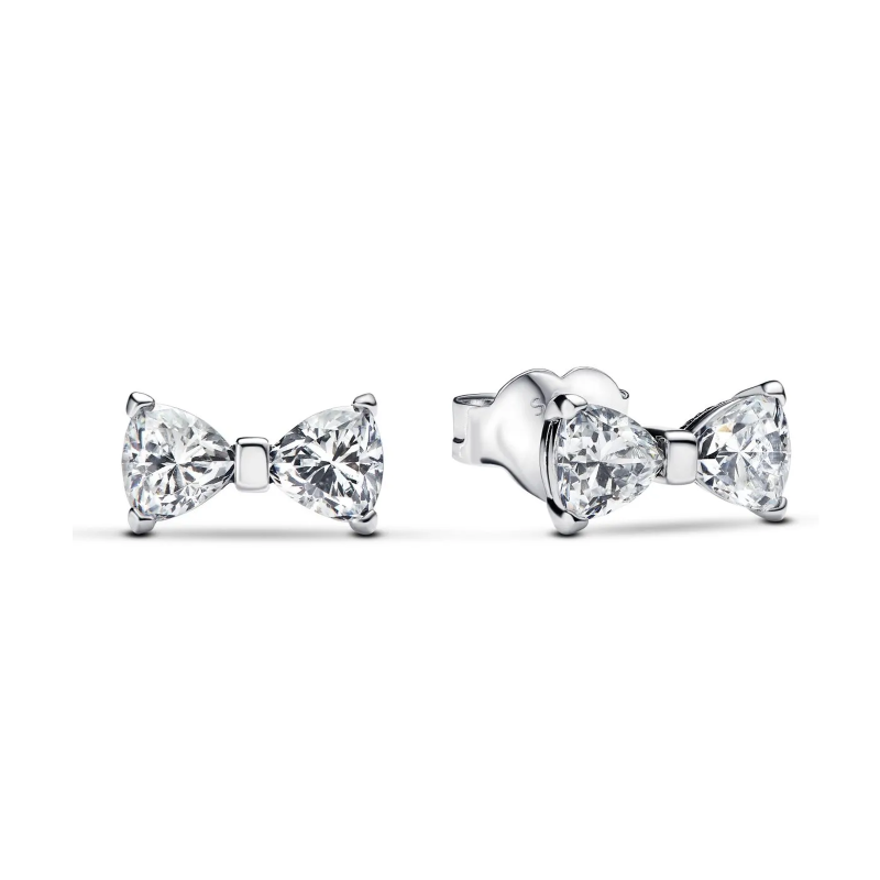Pendientes Pandora Lazo Plateado 293542C01: Pendientes de botón en plata de primera ley Lazo Pequeño Brillante adornados con circonitas cúbicas transparentes.