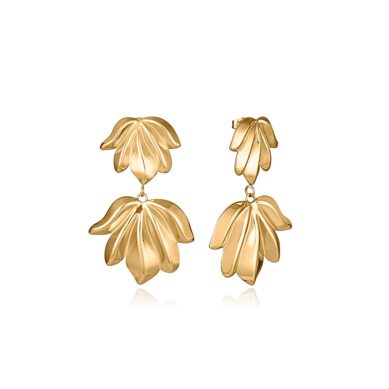 Pendientes Viceroy mujer acero dorado hoja 15158E01012. Pendientes de mujer en acero con acabado IP dorado, diseñados en una delicada forma de hoja. Estos pendientes combinan la elegancia del dorado con un diseño natural y sofisticado, añadiendo un toque de frescura y distinción a cualquier look. Su forma de hoja aporta un aire orgánico y moderno, haciéndolos perfectos tanto para el día a día como para ocasiones especiales. Una pieza versátil y con estilo, ideal para la mujer que busca un accesorio elegante y atemporal. Largo 5 cm.