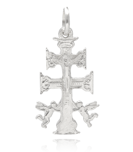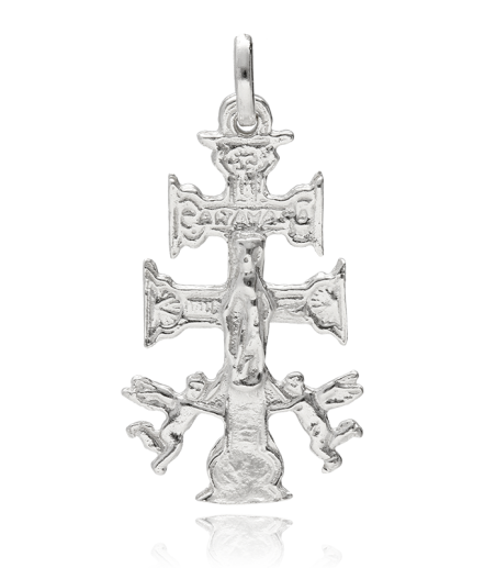 Colgante en Plata de Primera Ley con la imagen frontal del cristo en relieve y en el reverso imagen de la virgen. Altura total: 30mm.