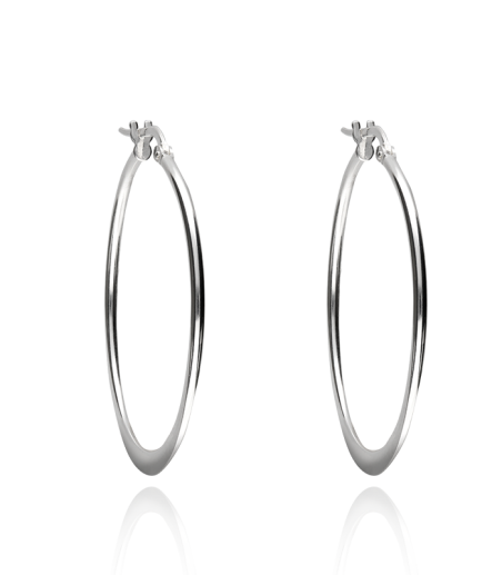 Aros en Plata de Primera Ley, con forma de círculo con la zona inferior levemente ensanchada, en un acabado pulido y brillante. Cierre de presión.