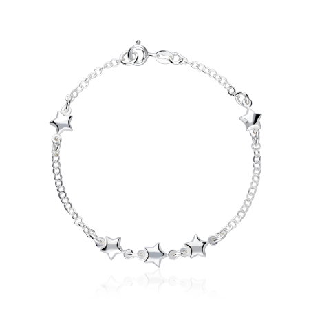 Pulsera Plata primera ley 18cm "Antares": Pulsera realizada en plata de primera ley de acabado pulido, con eslabones redondeados y 5 adornos en forma de estrellas. Cierre de tipo reasa.