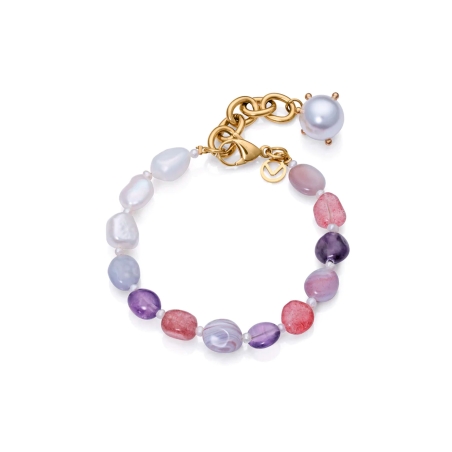 Pulsera Viceroy Chic de acero en Ip dorado con piedras moradas y perlas 14042P01019. Pulsera Viceroy Chic de mujer en acero con piedras azules y perlas naturales y sinteticas, largo 17,5 cm.