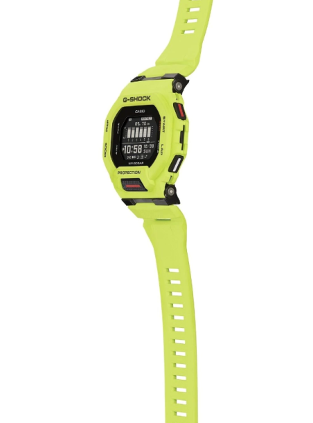 Reloj Casio Deportivo G-Squad GBD-200-9ER. Estos modelos tienen un diseño de esfera cuadrada en colores escogidos a juego con los entrenamientos más extremos. Ponte el G-SQUAD más fino hasta la fecha. Las ranuras laterales del bisel permiten ver el color de la caja interior, lo que resalta el fino grosor del reloj.