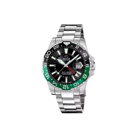 Reloj Jaguar Ceramic GMT Esfera Verde J1011/5: Reloj Jaguar de hombre fabricado en acero y bisel bicolor verde y negro. Dispone de esfera en color negro, calendario en la posición del tres y marcadores en forma de barra. Un diseño clásico y elegante perfecto para combinar con cualquier look.