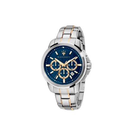Reloj Maserati hombre brazalete acero y esfera azul R8873621016. Reloj Maserati R8873621016 de la colección SUCESSO. Reloj con Caja, Brazalete de Acero y Función De Cronógrafo y Fecha. Esfera en color Azul y Detalles Chapados.