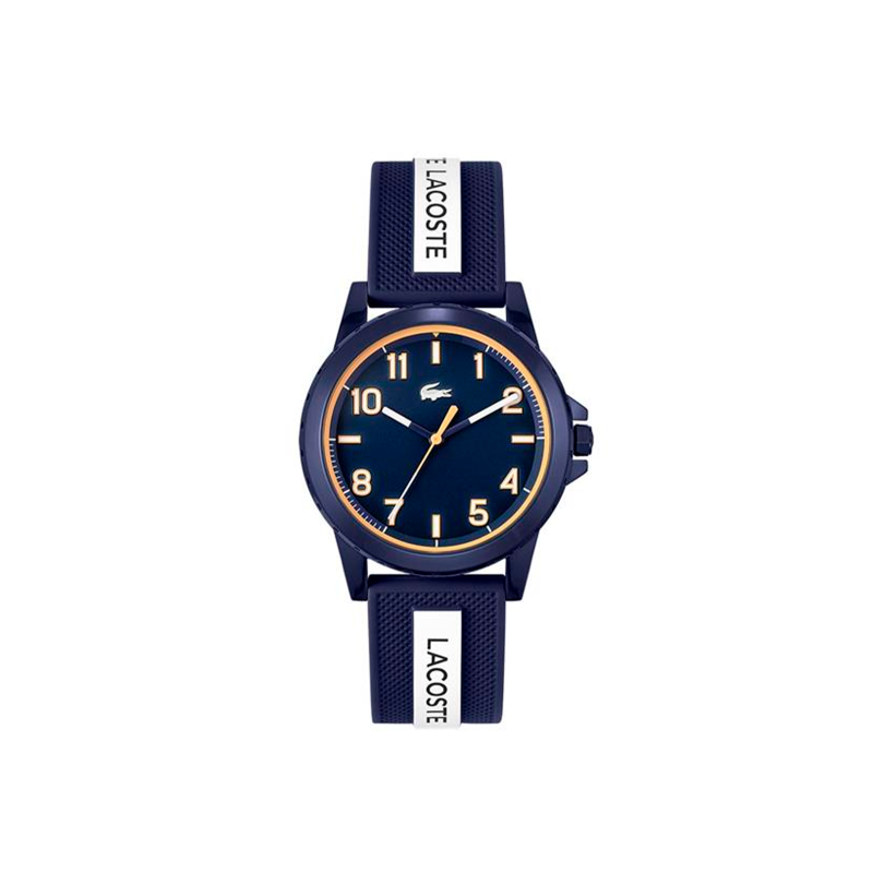 Reloj Lacoste Niño Rider Esfera Azul 2020142: Reloj Lacoste para niño de la colección Rider en color azul y correa de silicona azul y blanco con el nombre de la marca. Dispone de esfera en color azul con índices señalizados en amarillo y tres agujas en color blanco. Un diseño deportivo perfecto para el uso diario.