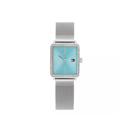 Reloj Tommy Hilfiger Mujer Acero y Circonitas Esfera Azul 1782789: Reloj Tommy Hilfiger para mujer fabricado en acero inoxidable con esfera en color azul y diseño rectangular. Un reloj de diseño elegante con dos agujas en color dorado movidas por mecanismo analógico.