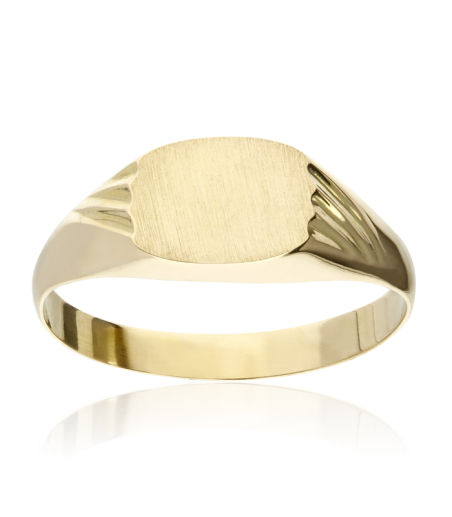 SELLO "BOJADOR" GALLONEADO ORO 18K: Fabricado en oro amarillo de primera ley, 18 quilates, de cabeza rectangular satinada. Con tres gallones transversales a cada lado de la zona grabable y aro de media caña.
