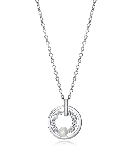 Collar VICEROY Elegant de plata con doble aro , uno formado con las palabras mamá y amor, unido con una perla y circonitas.