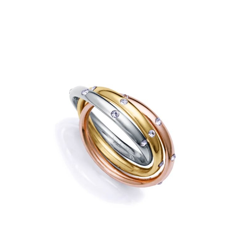 Anillo Viceroy Acero Aro tricolor 14192A01. Set de tres anillos de acero para mujer en tres tonos diferentes: acero, IP rosa e IP dorado. Cada anillo está adornado con cristales que aportan un toque de brillo elegante. Son perfectos para combinar o llevar por separado, añadiendo versatilidad y estilo a cualquier look. Ideales para quienes buscan un accesorio moderno y sofisticado.