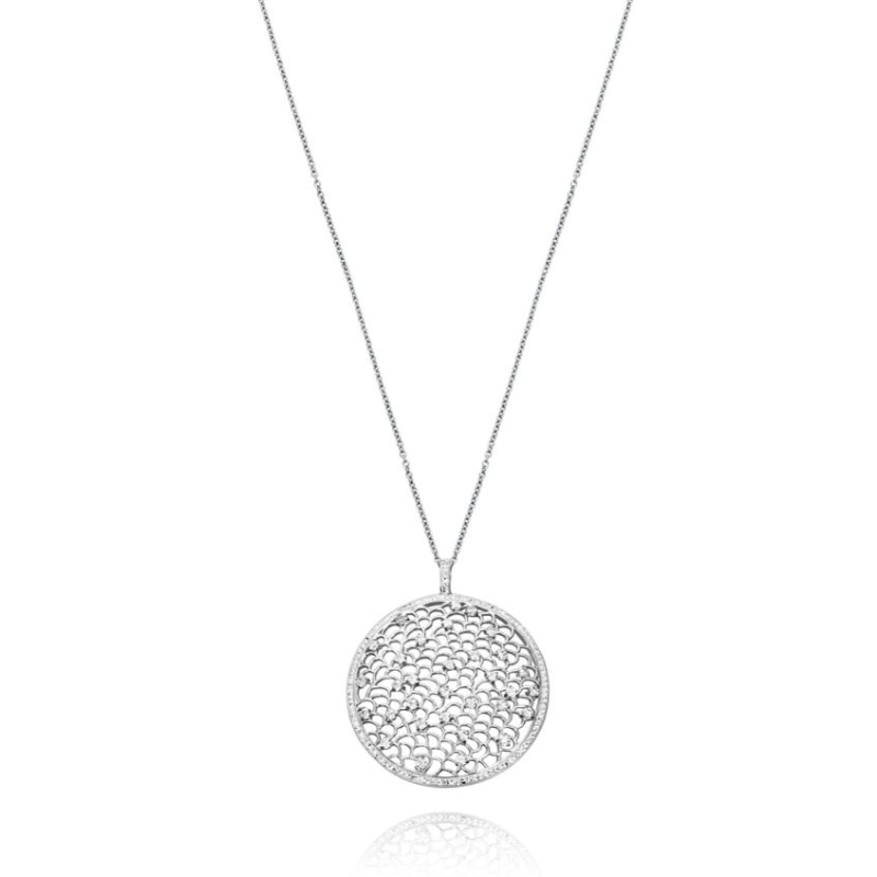 Collar Viceroy chic acero circonitas 75040C01000. Colgante de Mujer Viceroy Chic de acero. Diseño de disco calado con circonitas. 4cm diámetro. Largo de la cadena 60cm y extensión de 5cm.